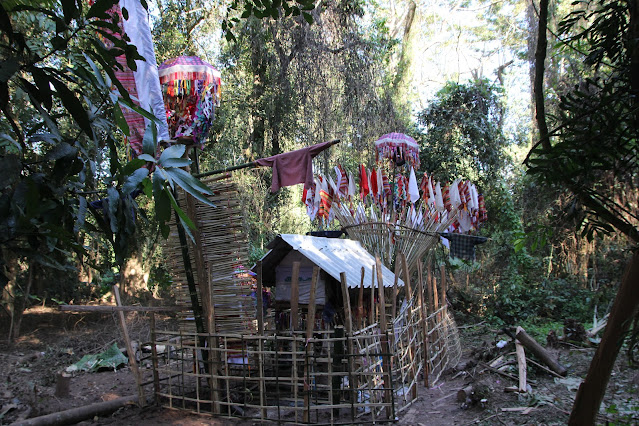 Den Toten werden werden Gaben für ihre Reise mitgegeben. An einer frischen Grabstelle ein kaum auszuhaltener Gestank nach Aas. Diesem Toten sind 2 Büffelköpfe geopfert worden, die nun von tausenden Maden abgenagt werden
